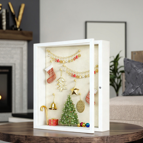 Fuling Creative Handmade Dried Flower Specimen Photo Frame Popular Christmas Series Magnetic Hollow Deep Shadow Box Frame
